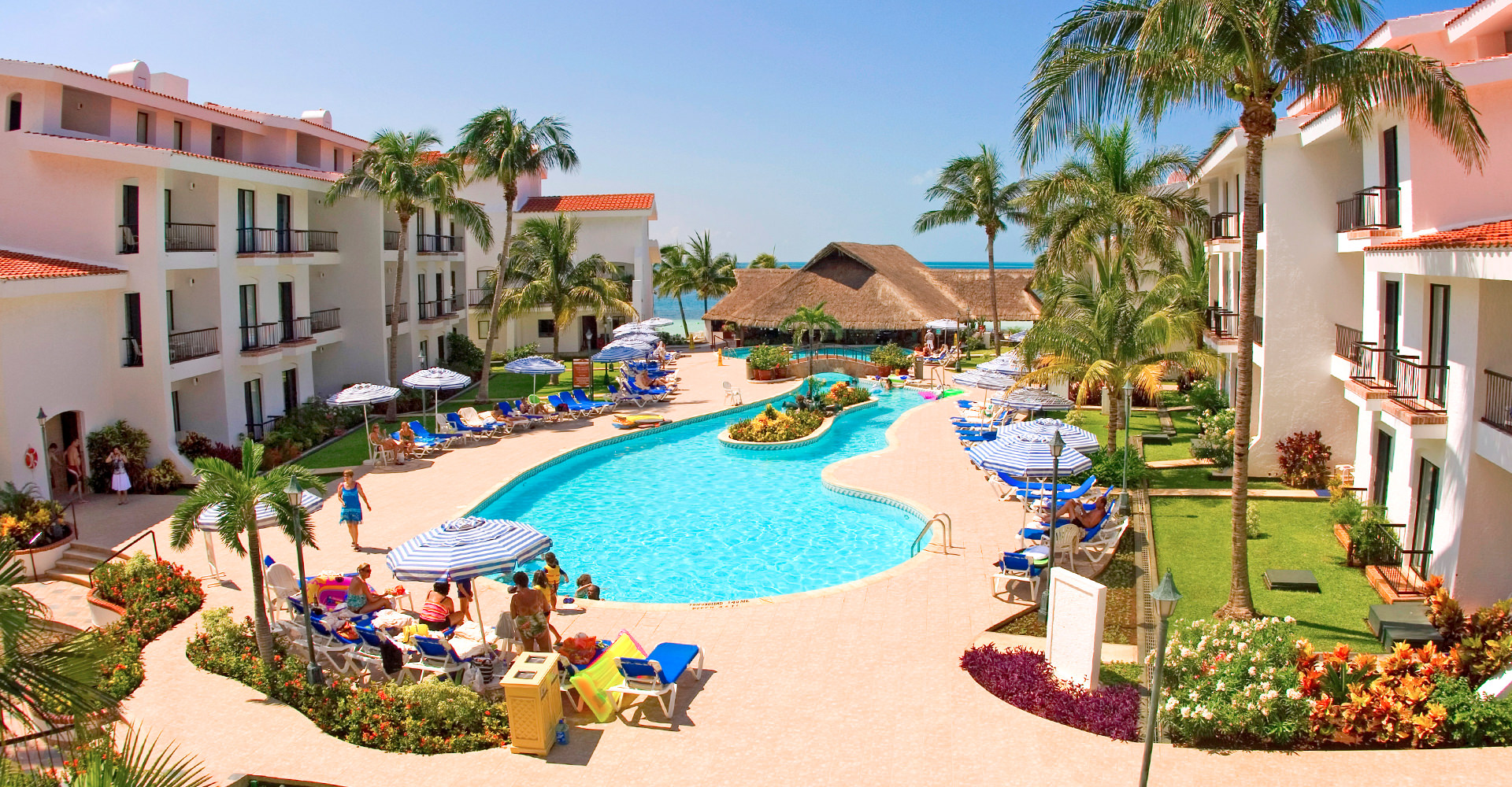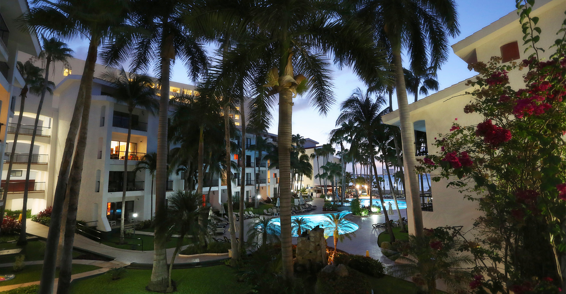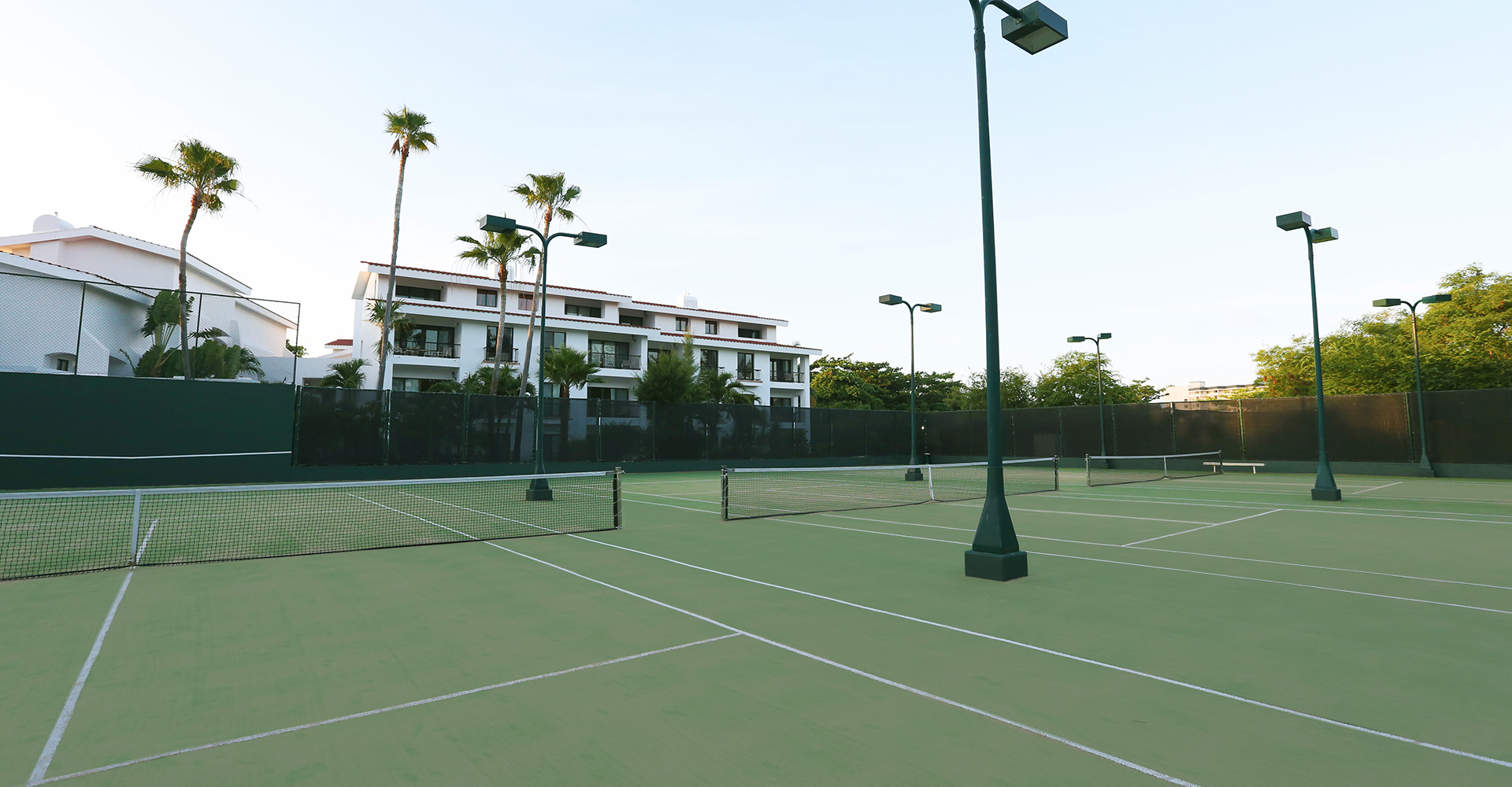 The resort boasts beautiful crystal clear pools, a lounge area by the beach facing the legendary turquoise waters of the Caribbean, a fully equipped gym, tennis courts, ample condo-style suites with space for the whole family, world class restaurants and a pleasant environment with impeccable gardens a two-story buildings.